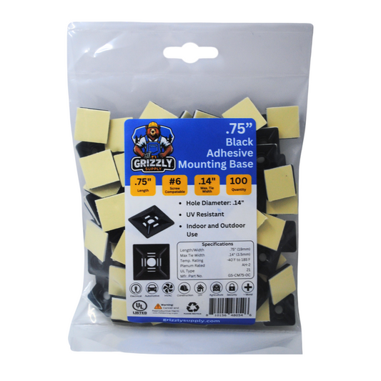 .75" Black 4-Way Adhesive Cable Mount 100/bag