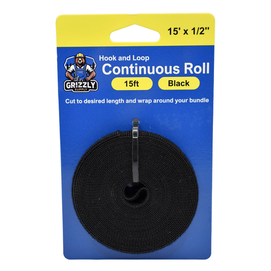 1/2" Black Hook and Loop Continuous Roll 15ft/roll