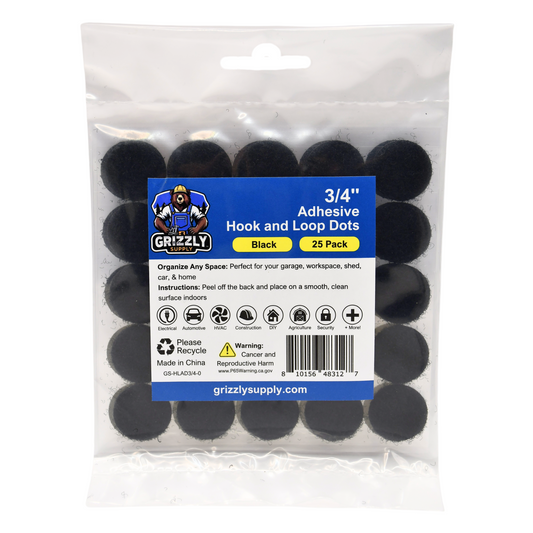 .75" Black Adhesive Hook and Loop Dot 25/pk