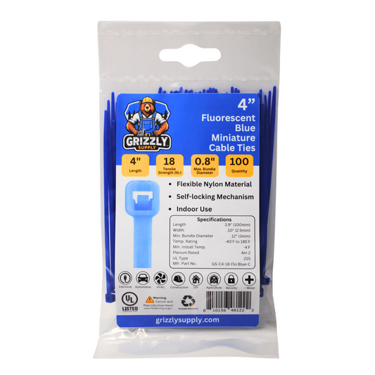 4" 18lb Fluorescent Blue Cable Tie 100/bag