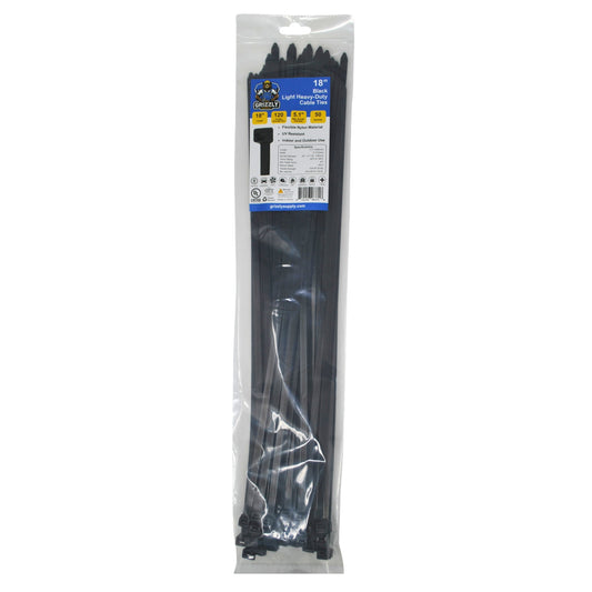 18" 120lb Black Light Heavy-Duty Cable Tie 50/bag