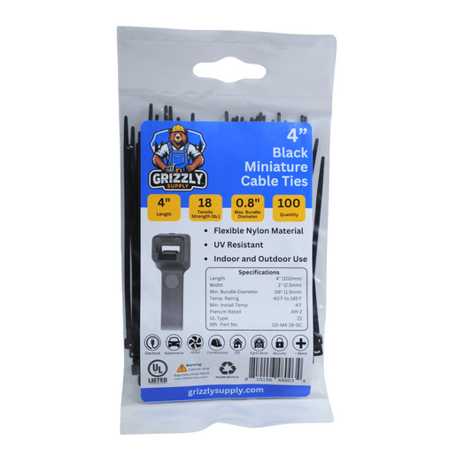 4" 18lb Black Miniature Cable Tie 1000/bag
