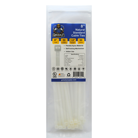 Tackle a wide range of applications with our standard cable ties, featuring a versatile design and a robust 50lb tensile strength for dependable performance. As the perfect all-purpose zip tie, they are the essential high-quality tool for organizing cables, securing items, and keeping any project running efficiently.